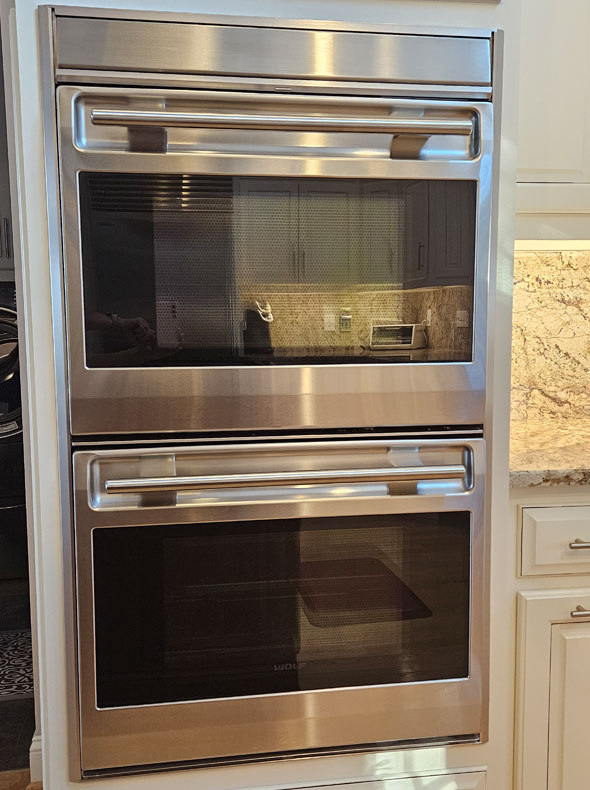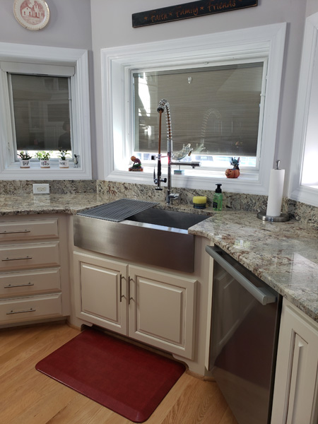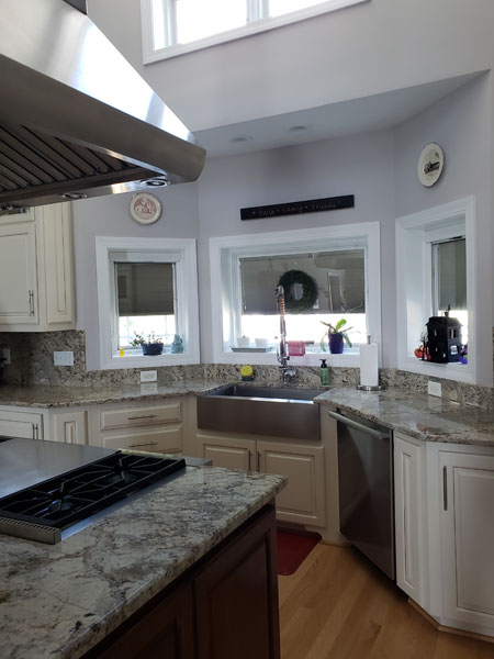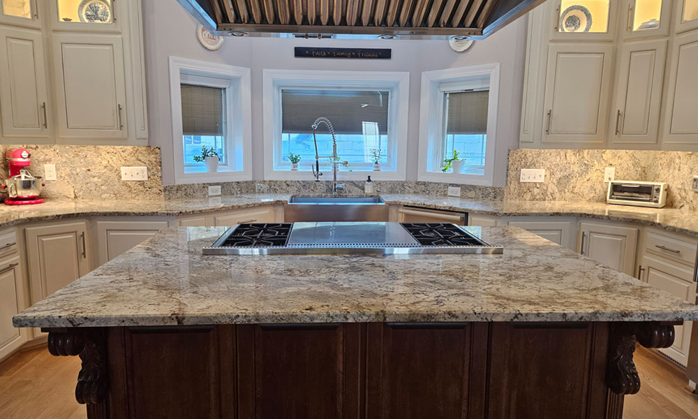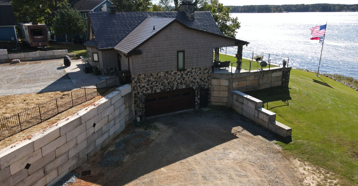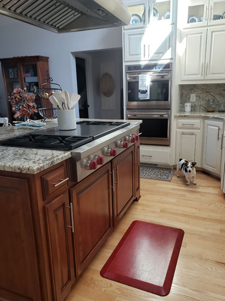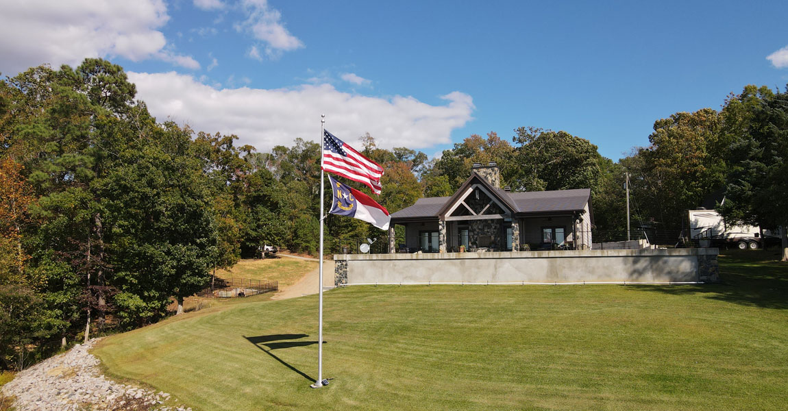 The Lake Gaston home for sale by owner has a Chef’s Kitchen featuring granite counters, a stainless farmhouse sink, a large cherry island, a Stainless “Subzero” refrigerator, and wine cooler, Stainless “Wolf” double ovens, 4 burner cooktops with griddle, a microwave, and exhaust, under the cabinet lighting and lighting in the seed glass upper cabinets (all cabinets are custom built by Quality Cabinets in Roanoke Rapids NC)